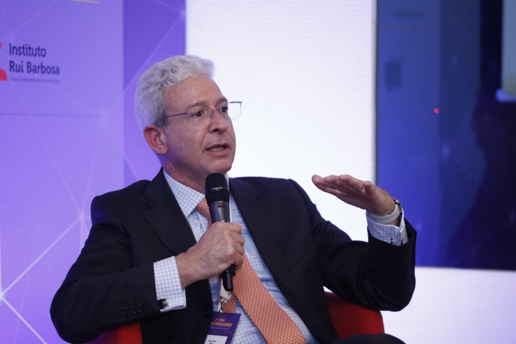 Com o título Desafíos de las Guerras: ¿Bailar al Borde del Abismo?, o quarto painel desta quinta-feira (8) debateu como a atual política norte-americana provavelmente causará a desaceleração do comércio global, impactando as cadeias de suprimentos e aumentando a inflação. Amanda Mars, diretora do CincoDías e subdiretora de informação econômica do El País, moderou a conversa entre Carlos Pio, professor adjunto da IE University Madrid; Guilherme Mello, secretário de Política Econômica do Ministério da Fazenda do Brasil, e Roberto Azevêdo, ex diretor-geral da Organização Mundial do Comércio (OMC).