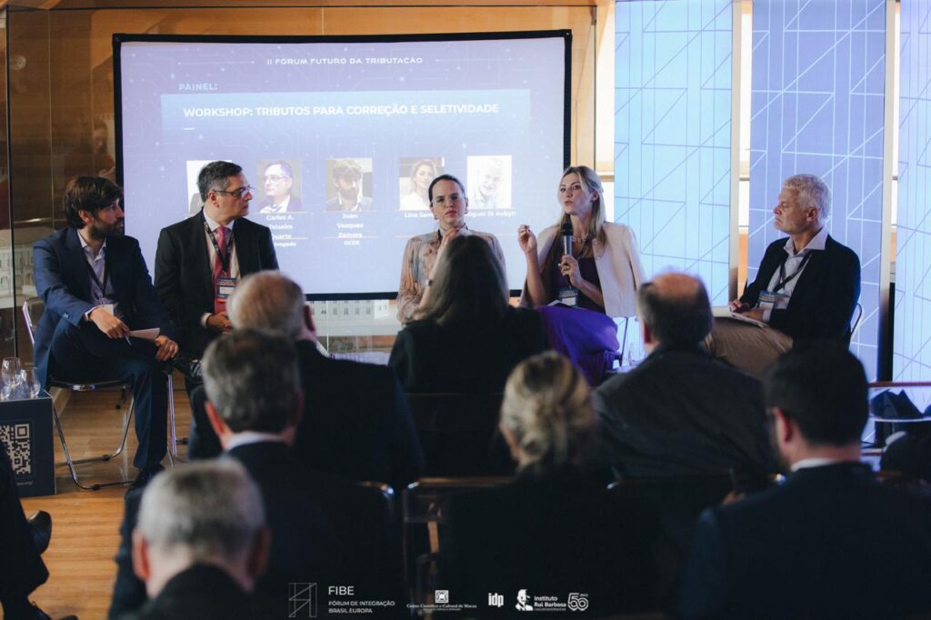 A economista Cristina MacDowell, especialista principal em Gestão Fiscal do Banco Interamericano de Desenvolvimento (BID), abriu o workshop Administração Tributária Descentralizada e Automatizada. O debate foi realizado na tarde desta quinta-feira (2), durante o II Fórum Futuro da Tributação, em Lisboa, e mediado pelo advogado Celso de Barros Correia Neto.
